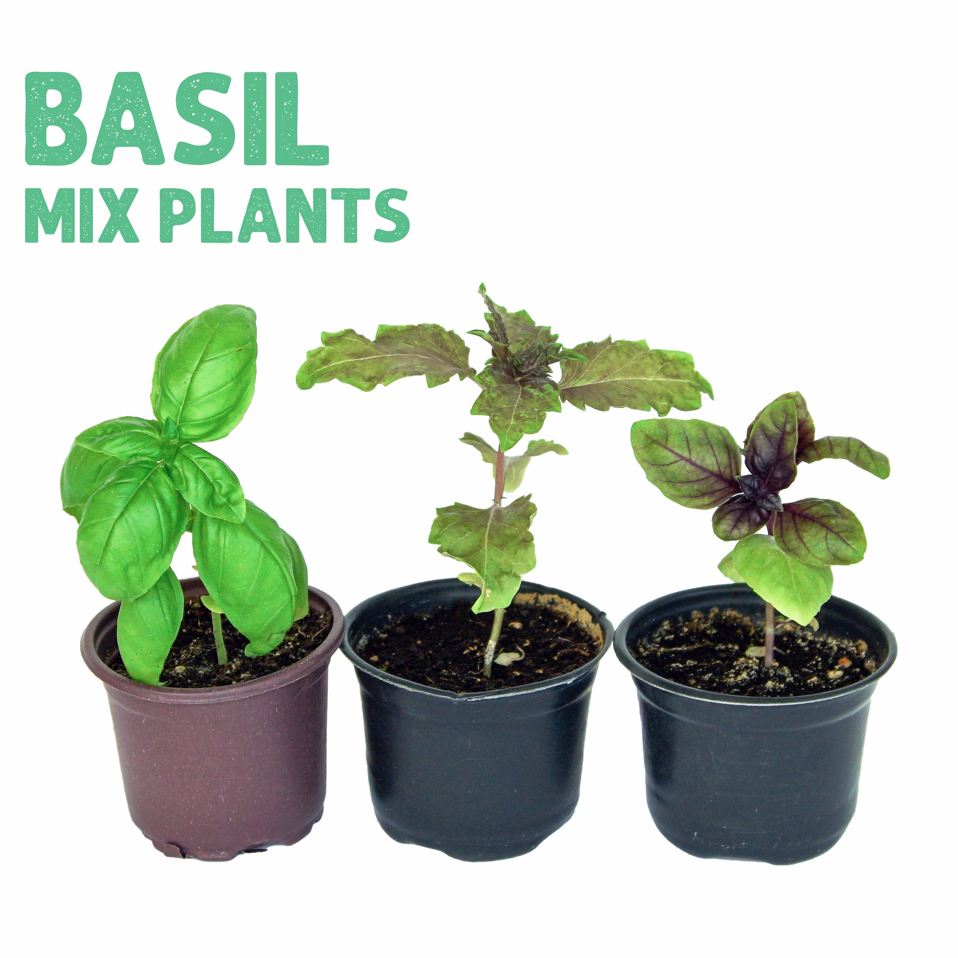 تشكيلة عطرية من ثلاثة أنواع من الريحان: الجينوفيزي برائحته الكلاسيكية الحلوة، البنفسجي رَفِلز بأوراقه المموجة البنفسجية، والريحان البنفسجي بأوراقه الناعمة ذات اللون البنفسجي الداكن. تضيف نكهة ولوناً لمطبخك وحديقتك.