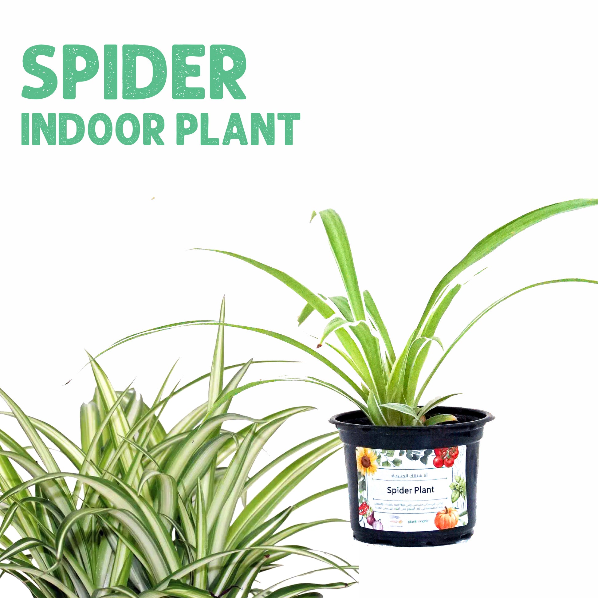 The Spider Plant grows long arching leaves with a mix of green and creamy white, and produces baby offshoots that can be replanted easily — perfect for shelves, desks, or hanging baskets.