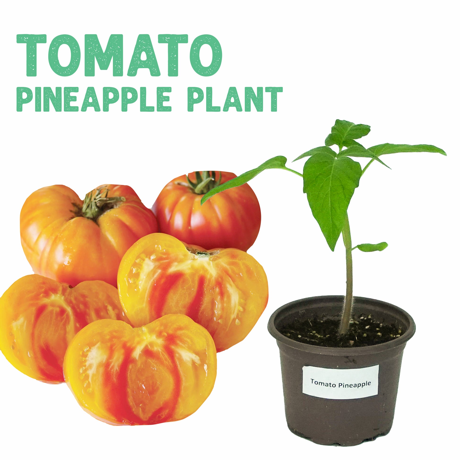 The Pineapple Tomato is a stunning heirloom variety, recognized for its large yellow fruits marbled with red and its sweet, fruity flavor.